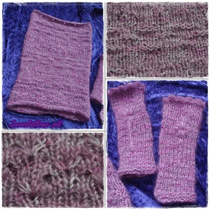 Erstmal einfach genügend Maschen angeschlagen und in Runden gestrickt. Hier und da ein kleines Muster eingefügt und bei ausreichend Höhe abgekettet. Liegt warm und weich und nicht eng am Hals. Ich könnte das Ding auch als Hood tragen, also über den Kopf gezogen. Weil genug von beiden Garnen übrig war, gab es dann noch Pulswärmer. Kuschlig und warm sind sie! Weil ich Freude daran hatte, bekamen sie noch ein Blümchen aufgestickt.