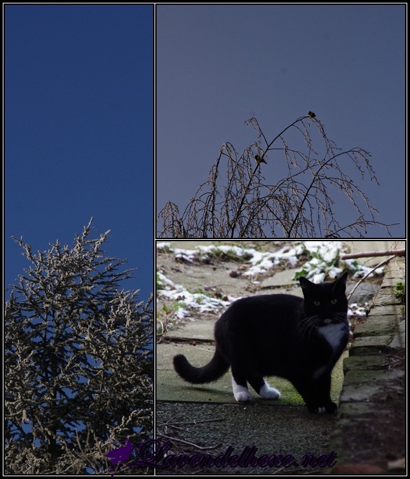 Dass ich nicht mehr am Boden füttere und damit auch die Katzen nicht mehr anlocke merke ich, wenn ich morgens nach einer schneereichen Nacht um das Haus herum gehe – nach den Vögeln bin ich die Erste, die den Schnee berührt. Früher waren immer schon die Fellnasen vor mir unterwegs. Und die waren nicht nur wegen der fliegenden Gesellschaft hier, sondern ließen sich das Fettfutter schmecken. Es tut mir ja leid, das sie nun nicht mehr davon naschen können. Aber für die Sicherheit der Gefiederten ist es so besser. ![]()