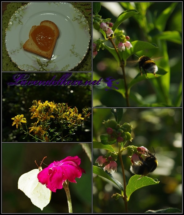 Und mit ein wenig Glück konnte ein Schmetterling an den Lichtnelken “eingefangen” werden. Die Hummel im Anflug und am Ziel – ein paar Blüten sind noch am Schneebeerengesträuch zu finden und weiterhin sehr beliebt. Das Johanniskraut blüht noch so schön, da werde ich wohl einen Auszug in Melissengeist ansetzen – als Konservierung für meine Hautpflege. ![]()