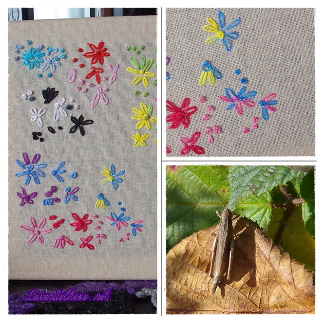 Fangen wir wieder mit dem Stickbild an. Es sind 30 Stiche gewesen und es zeigen sich wieder die Tücken des langen Farbverlaufs (hier: blau-gelb-blau-rosa). Das nehme ich aber hin – das gehört eben dazu und ich lerne daraus für die Zukunft und andere Projekte. Noch drei Monate, dann werde ich wahrscheinlich die Lücken mit einer ganz anderen Farbe auffüllen und das Bild dann im Januar an meine kleine Stickbildwand hängen.