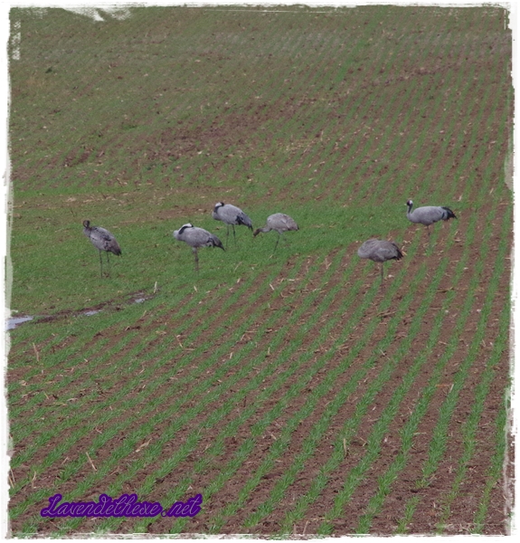 Bei leider sehr düsterem Himmel waren wir in der Nähe des Kranichrastplatzes. Das war Zufall, weil wir nicht so furchtbar weit entfernt in einer Kunstausstellung waren. Dann kann man auch gleich noch einige Kilometer weiter fahren und mal gucken. Auf einem Feld standen Kraniche. Die Haltung einiger Tiere sieht seltsam aus, finde ich. Wie ich las, ist in diesem Jahr wohl wieder die Vogelgrippe im Kranichbestand…. Ob diese Tiere krank sind? Es war mittags und nur wenig los. Ein einziger Schwarm zog bei uns vorbei und ein Vogel separierte sich und flog seinen eigenen Weg. Ich hoffe, dass ich bei schönem Wetter nochmal dorthin fahren kann.