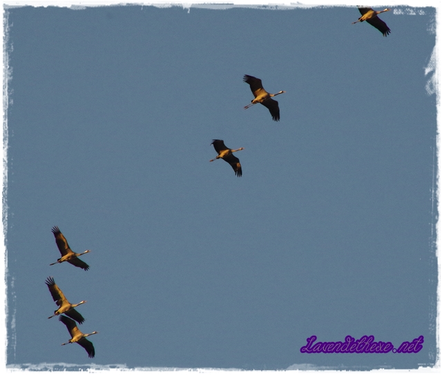 Dieses Mal aber waren wir zur abendlichen Einflugzeit dort. So kamen immer wieder Kranichzüge vorbei. Einige weiter rechts oder links oder sehr hoch. Andere dagegen: