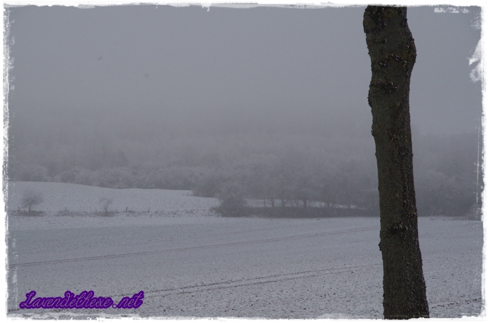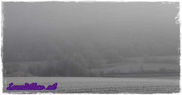 umhüllte die Konturen der Bäume und Sträucher. Eigentlich wollte ich hier einen Spaziergang machen, aber kalter Nebel im Gesicht hielt mich davon ab. Daher knipste ich nur ein paar Bildchen der Szenerie. Sieht aus wie in schwarz-weiß aufgenommen. ![]()