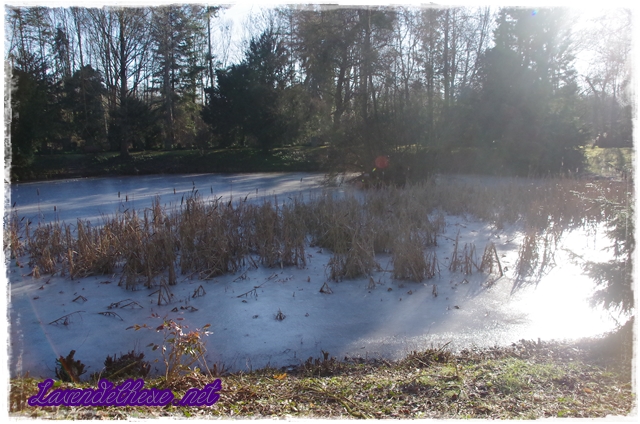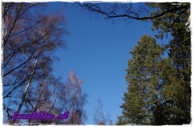 Und weil das Wetter so herrlich war und die Wege nicht so glatt wie bei uns, machten wir einen längeren Spaziergang an einem speziellen Ort. So viele Bäume stehen dort. Viele sehr alt und in vielen verschiedenen Arten. Ha – sogar der Specht trommelte schon! Obwohl der Teich noch vollkommen vereist ist.