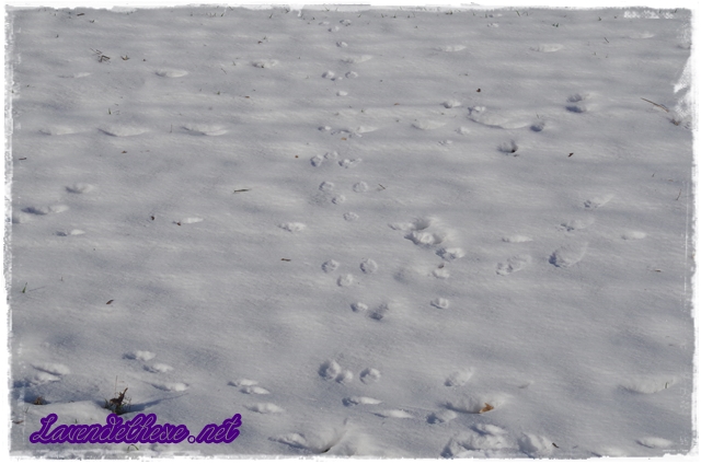 Fuchs und Hase sagen sich auf den Feldern „gute Nacht“, jedenfalls kreuzen sich hier viele Tierspuren. Und einen Fuchs erblickte ich vor kurzem aus dem fahrenden Auto auf einem verschneiten Feld.