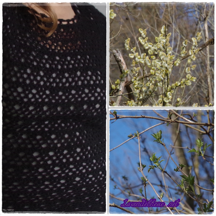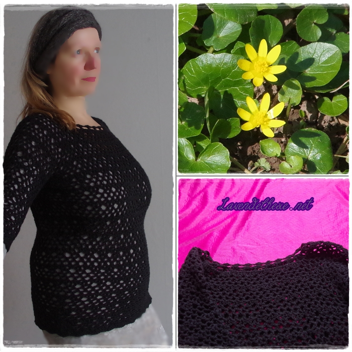 Denn vor ein paar Jahren erwarb ich bei Kristin Omdahl auf ihrer Homepage die Anleitung für das Margot Top – der Link führt dahin. Hier die Projektseite auf Ravelry: klick. Eine Reihe im Muster änderte ich: statt der dichten Stäbchen häkelte ich Luftmaschen dazwischen. Nur neun Tage brauchte ich – dann war der Pulli fertig. Inklusive Fäden vernähen. Häkeln geht echt schnell. Vor allem, wenn an nur einem Projekt gearbeitet wird…. ![]()